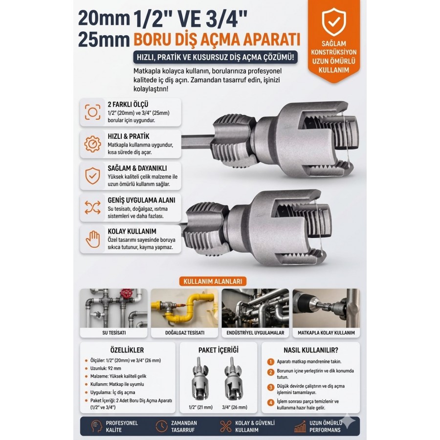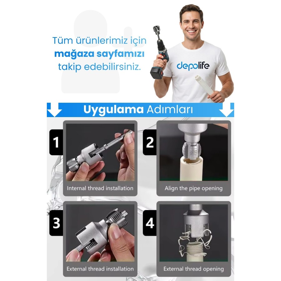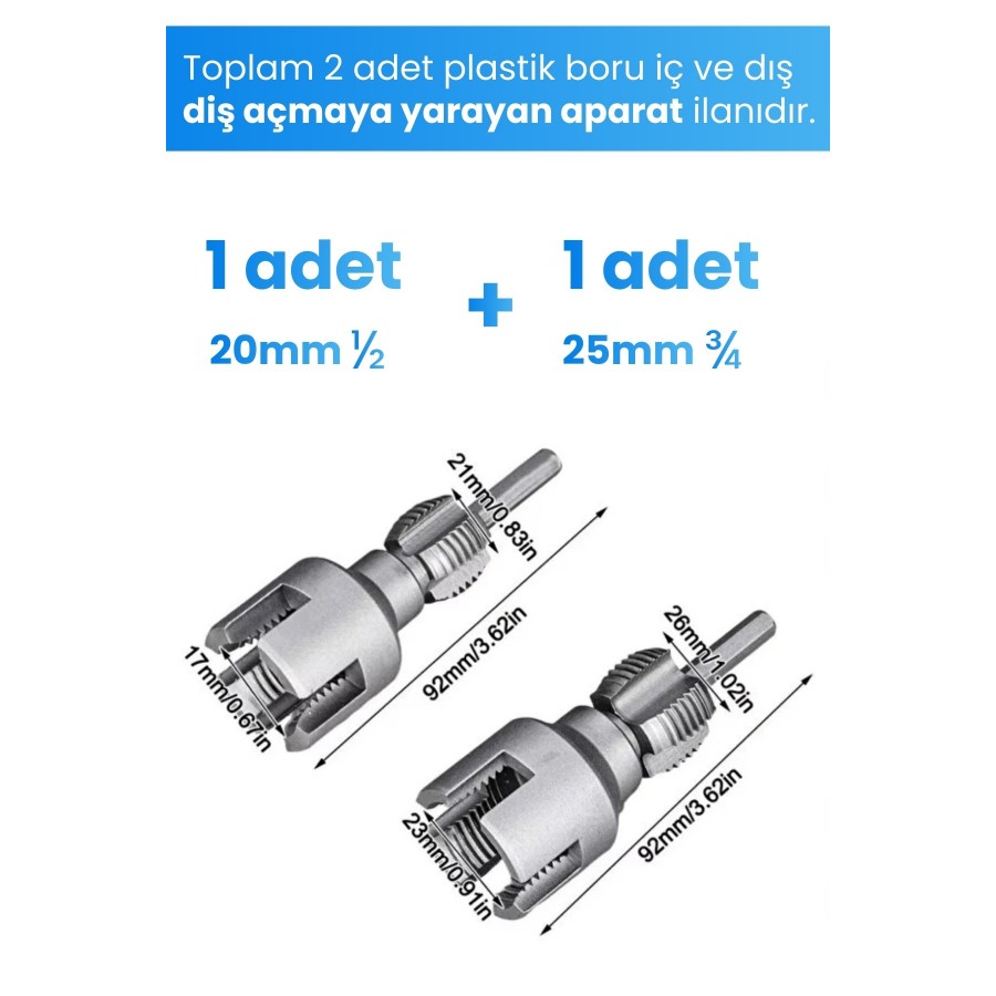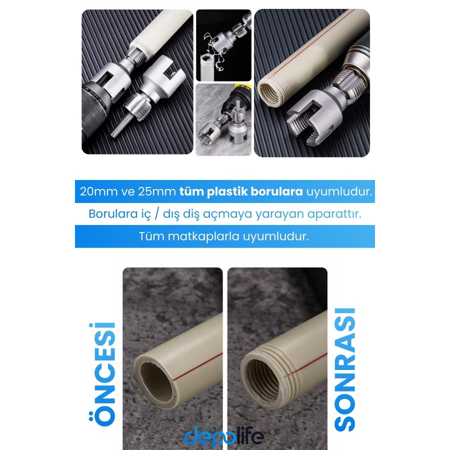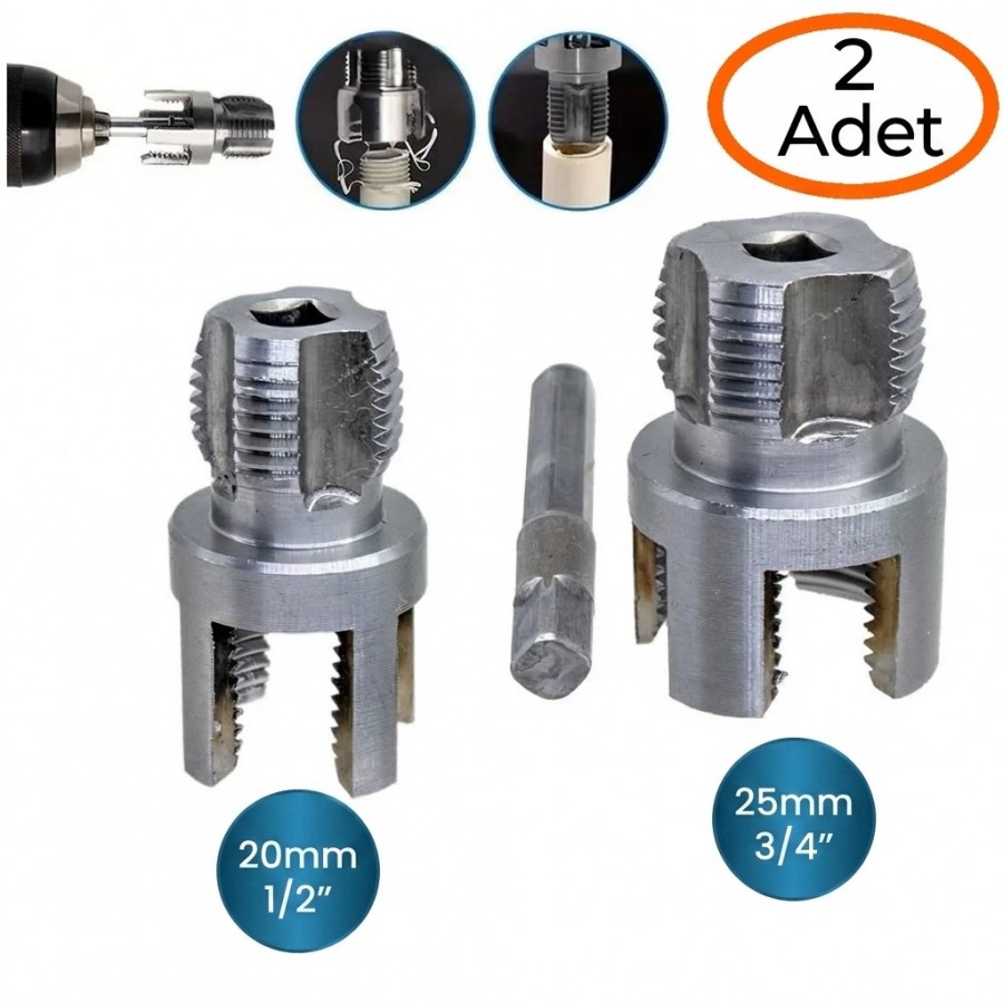 2’ li Set İç Dış Plastik Boru Diş Açma Seti 1/2 ve 3/4 İnç PVC Boru Pafta Klavuz 20mm 25mm PPRC
