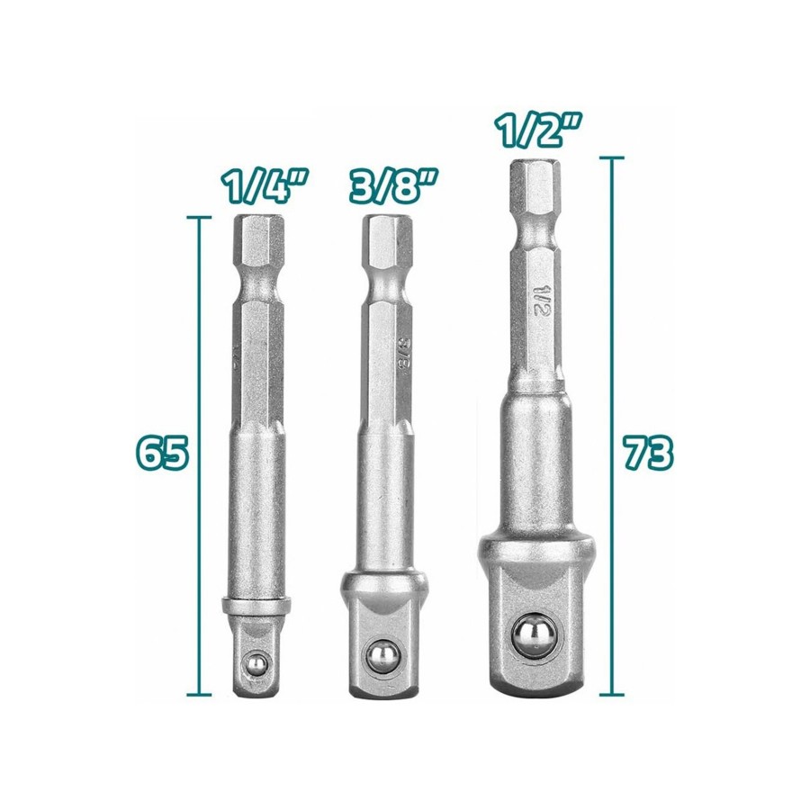 Hex Shank Socket Adapter Set - 1/2'', 3/8'', 1/4'' - 3 Parça
