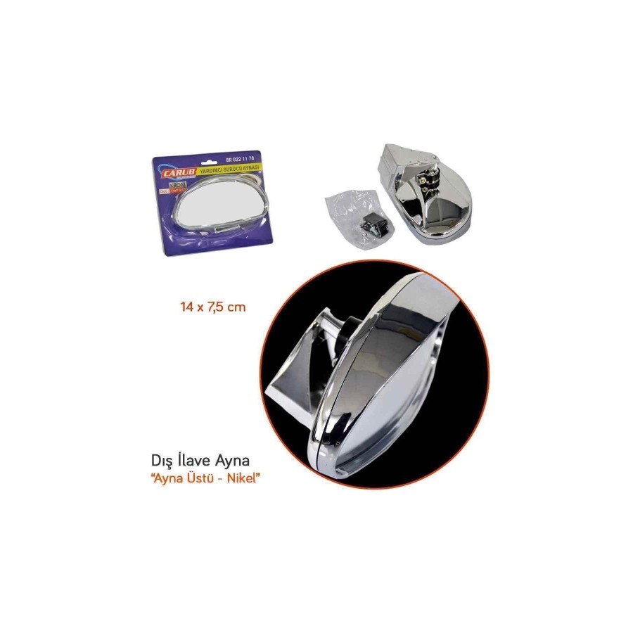 Kör Nokta Ayna Sürücü Kursu Eğitmen Ayna Üstü Dış Ilave Ayna Krom Nikel 14x7,5 Cm