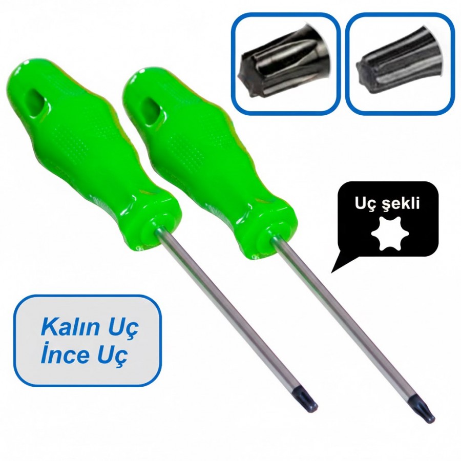 Tork tornavida seti, beyaz eşya ve elektrikli ev aletlerinde kullanılan torx (yıldız) vidaların sökülmesi ve takılması için özel olarak tasarlanmıştır.